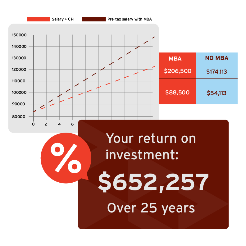 We have created a ROI calculator based on self-reported salary data of Australian MBA graduates from our 2024 Alumni Insights Survey, so you can crunch the numbers and determine what your ROI could look like.